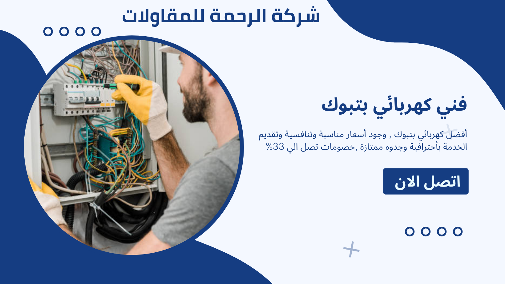 اختيار أفضل فني كهربائي بتبوك معتمد هو القرار الأذكى عندما تتعلق الأمور بسلامتك وسلامة منزلك. نقدم لك نخبة من أمهر الفنيين المعتمدين والمرخصين من الجهات الرسمية، والذين يمتلكون خبرة طويلة في جميع أنواع أعمال الكهرباء، من الصيانة البسيطة إلى التركيب الكامل للأنظمة الكهربائية الحديثة. نحن نستخدم أدوات متطورة وتقنيات فحص دقيقة للكشف عن الأعطال ومعالجتها بسرعة وكفاءة. لا تجازف بطلب فني غير مؤهل! دع الخبراء يهتمون بكهرباء منزلك أو متجرك أو شركتك، وتأكد من الحصول على نتائج تدوم طويلاً. تواصل معنا الآن لتحصل على خدمة راقية من أفضل كهربائي معتمد في تبوك وبأقل تكلفة ممكنة!