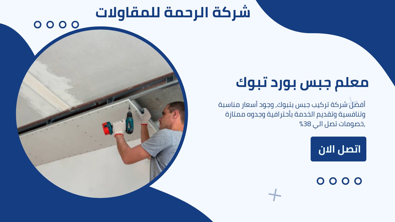 شركة الرحمة بتقديم أعلى مستويات الخدمة في مجال تركيب أو التصميمات ديكورات جبس بورد في تبوك. يعمل معلم جبس بورد تبوك المحترف لدينا على تحقيق رؤيتك وتلبية احتياجاتك بشكل دقيق. نحن نقدم تشكيلة متنوعة من التصميمات , ديكورات الفنية والأنماط المختلفة لتناسب أذواقك الشخصية. سواء كنت تبحث عن تصميمات وديكورات كلاسيكية أو عصرية أو حتى تصميمات مخصصة تمامًا، يمكننا تحقيقها لك بدقة واحترافية. إذا كنت تبحث عن مقاول جبس بورد تبوك او جبسون موثوق به، فلا تتردد في الاتصال بنا اليوم. نحن هنا لمساعدتك في تحقيق تصاميم جبس بورد جديد استثنائية تجعل منزلك أو مكان عملك يبرز بأسلوبه الخاص وجماله الفريد. سوف تحتاج الي